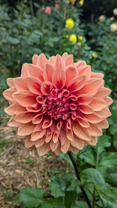 Burnt orange, large decorative dahlia.