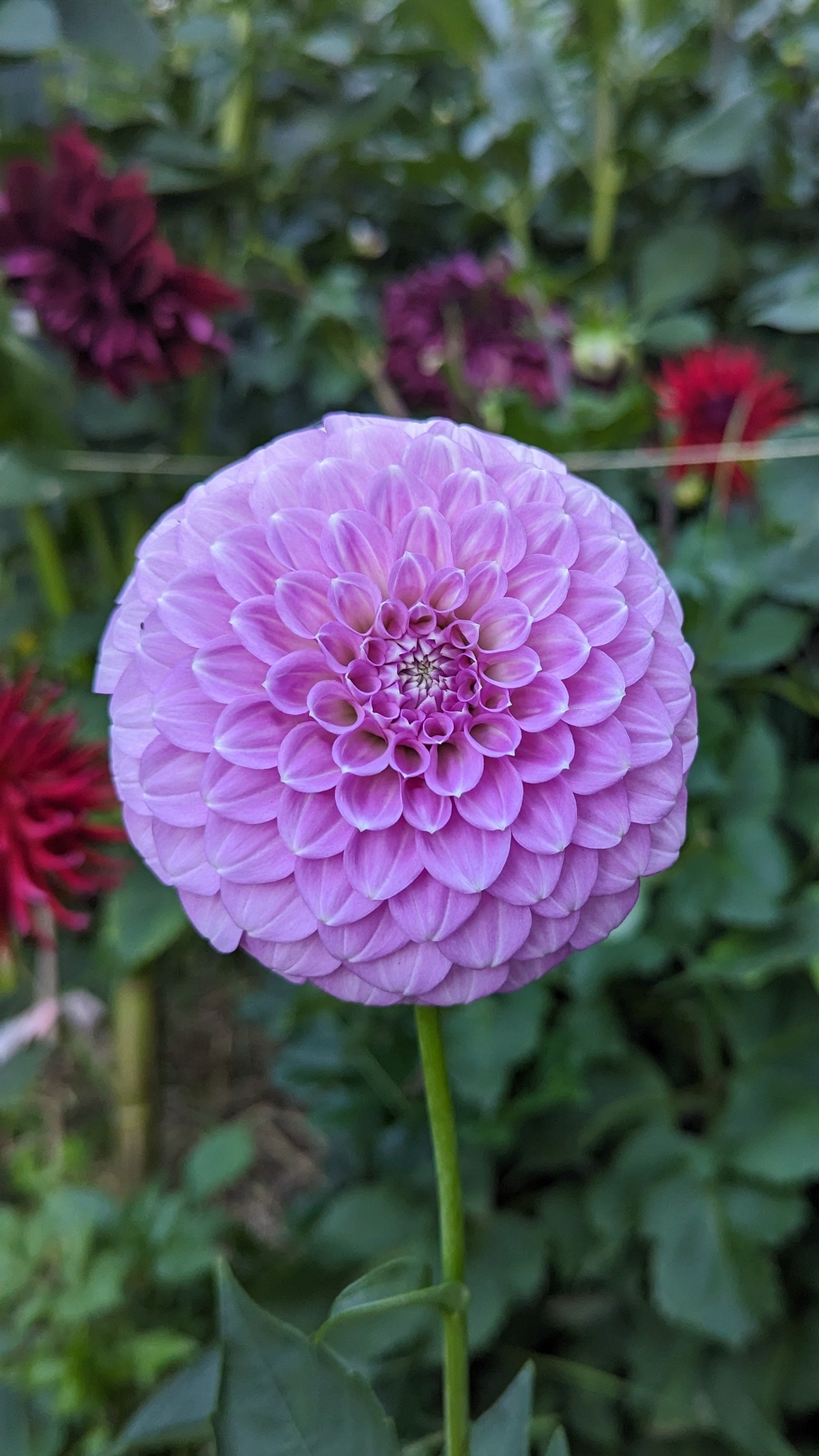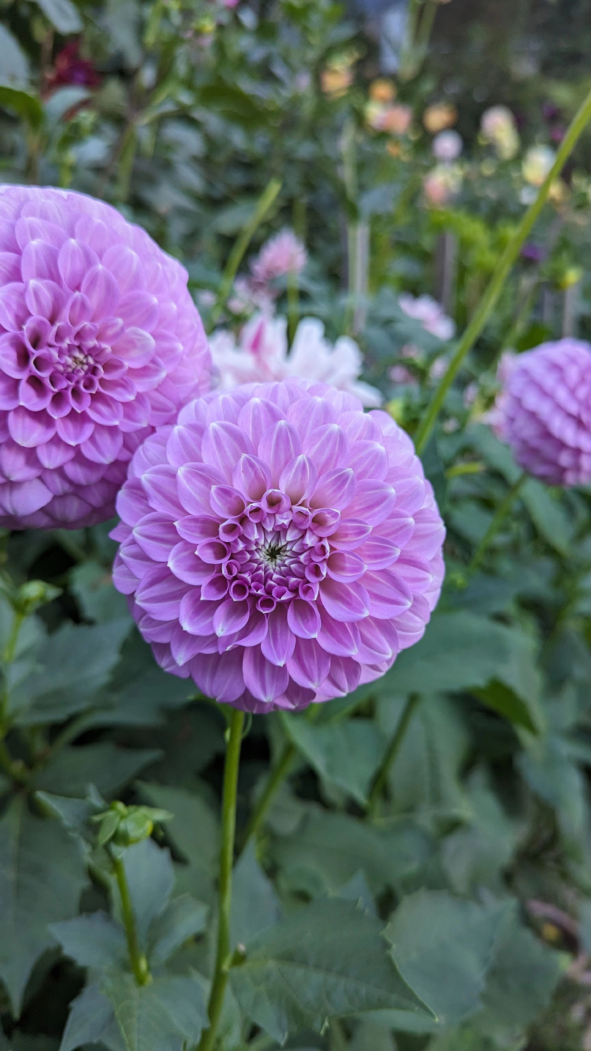 Miniature decorative lilac dahlia. High petal count, round shaped blooms and vigourous plant form.