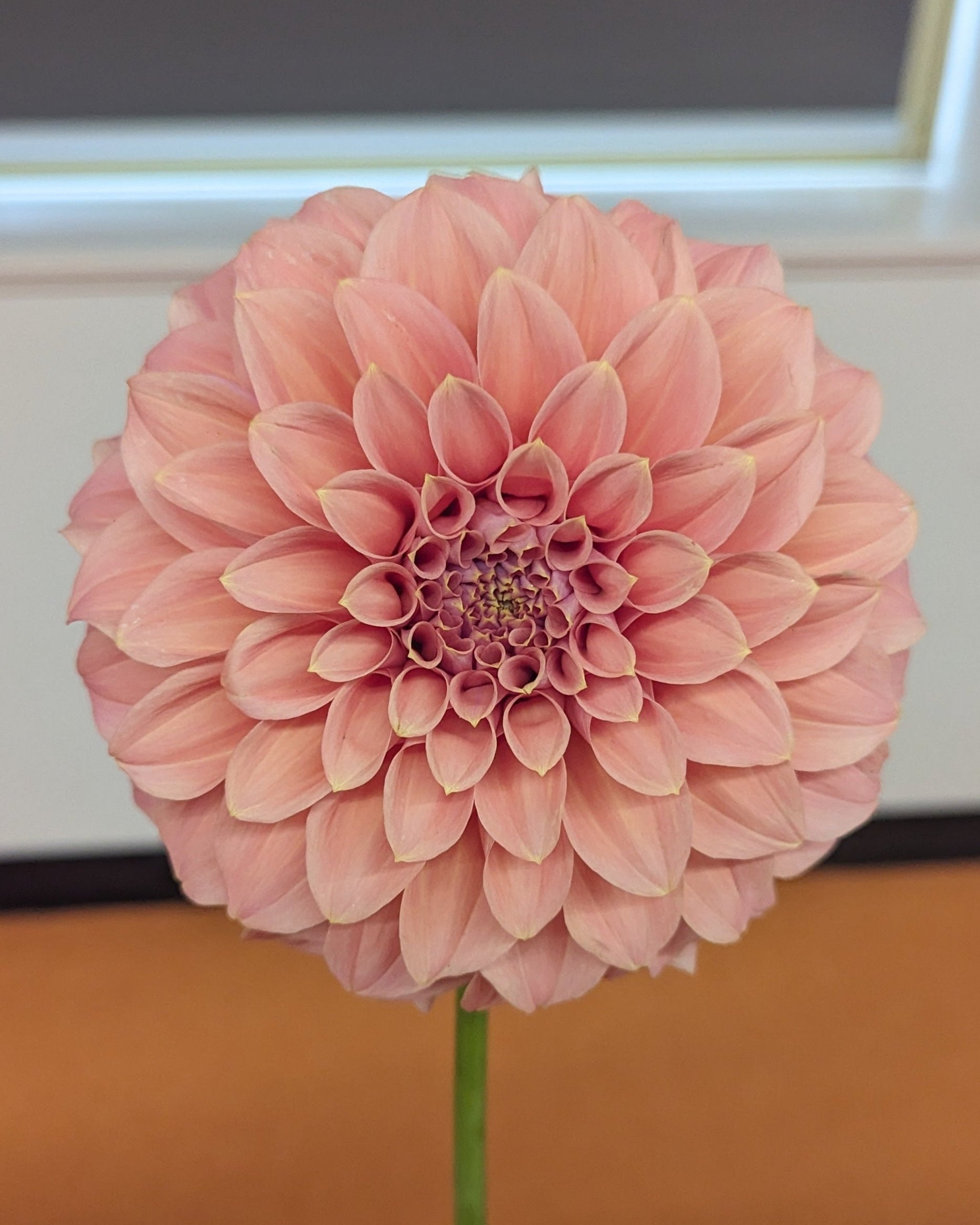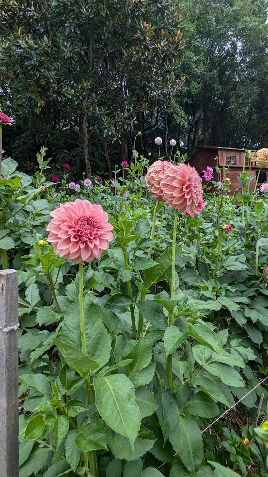 Salmon coloured small decorative dahlia. Can be grown to a medium if disbudded. A favourite of mine that I will always grow in the garden.