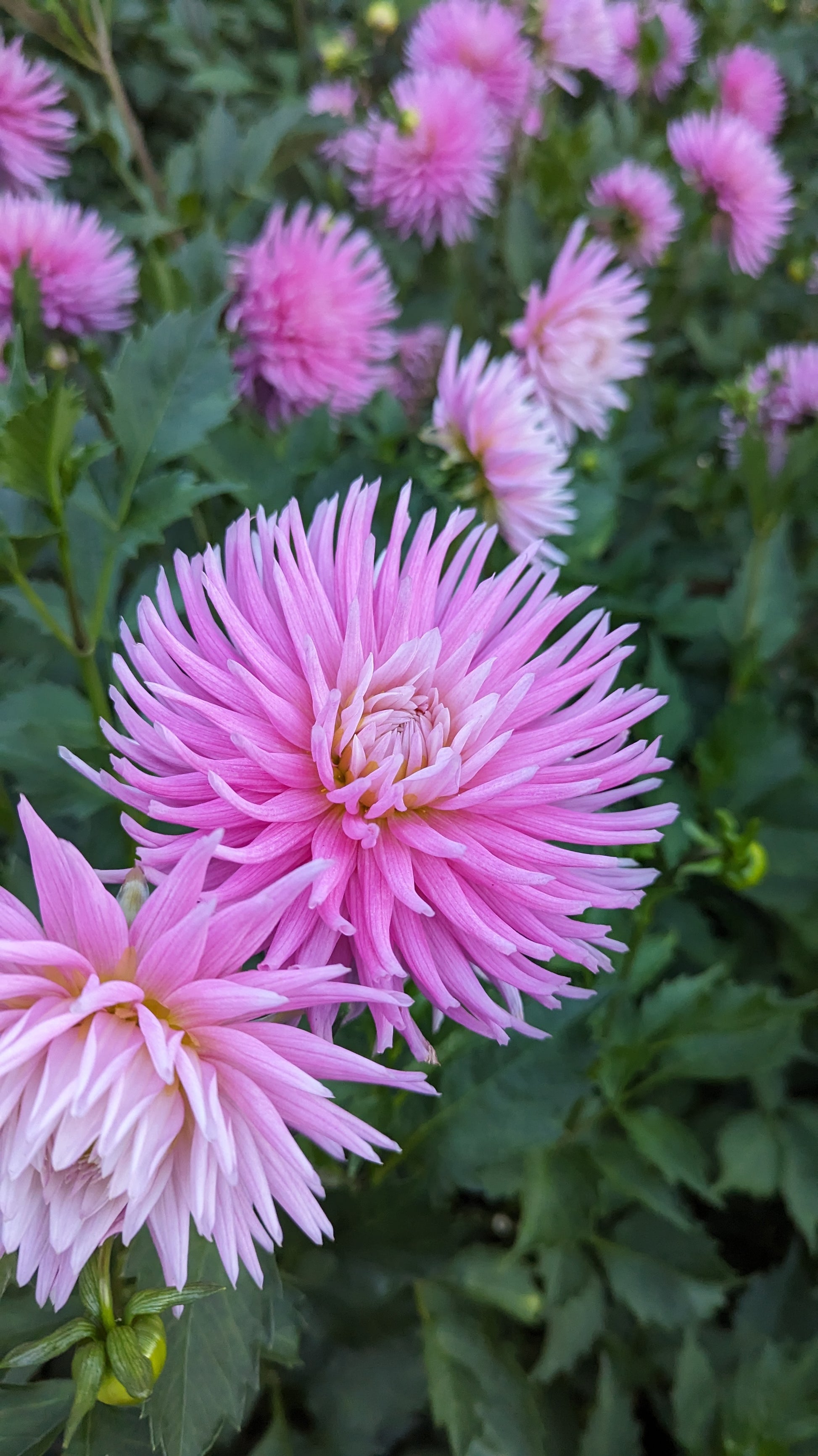 Minature pink cactus dahlia.