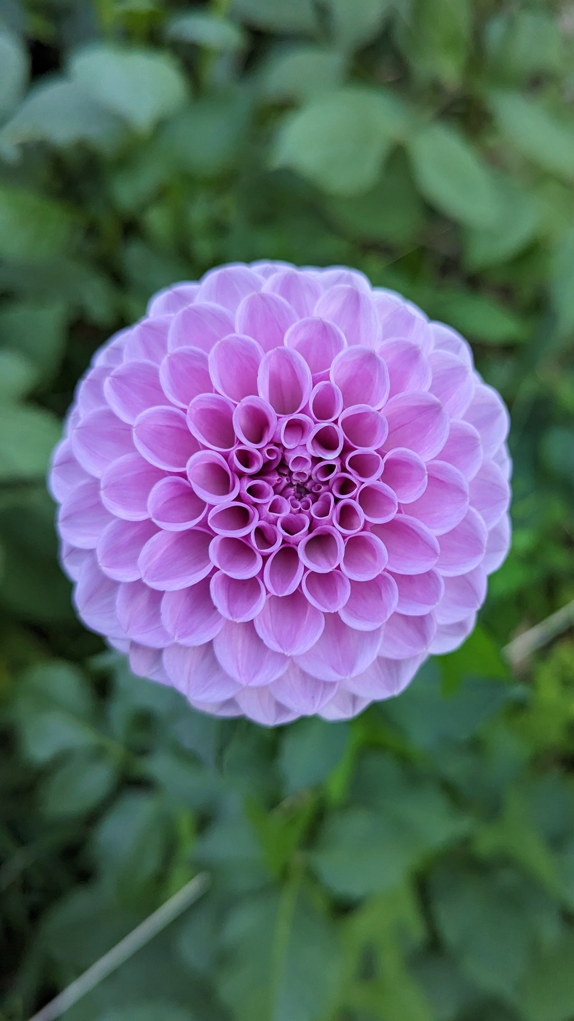 Lovely light mauve semi decorative dahlia that blooms generously throughout the season.